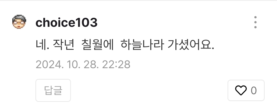 벌써 1년도 전에 저 댓글이 달렸던걸 이제야 보게 되었어요